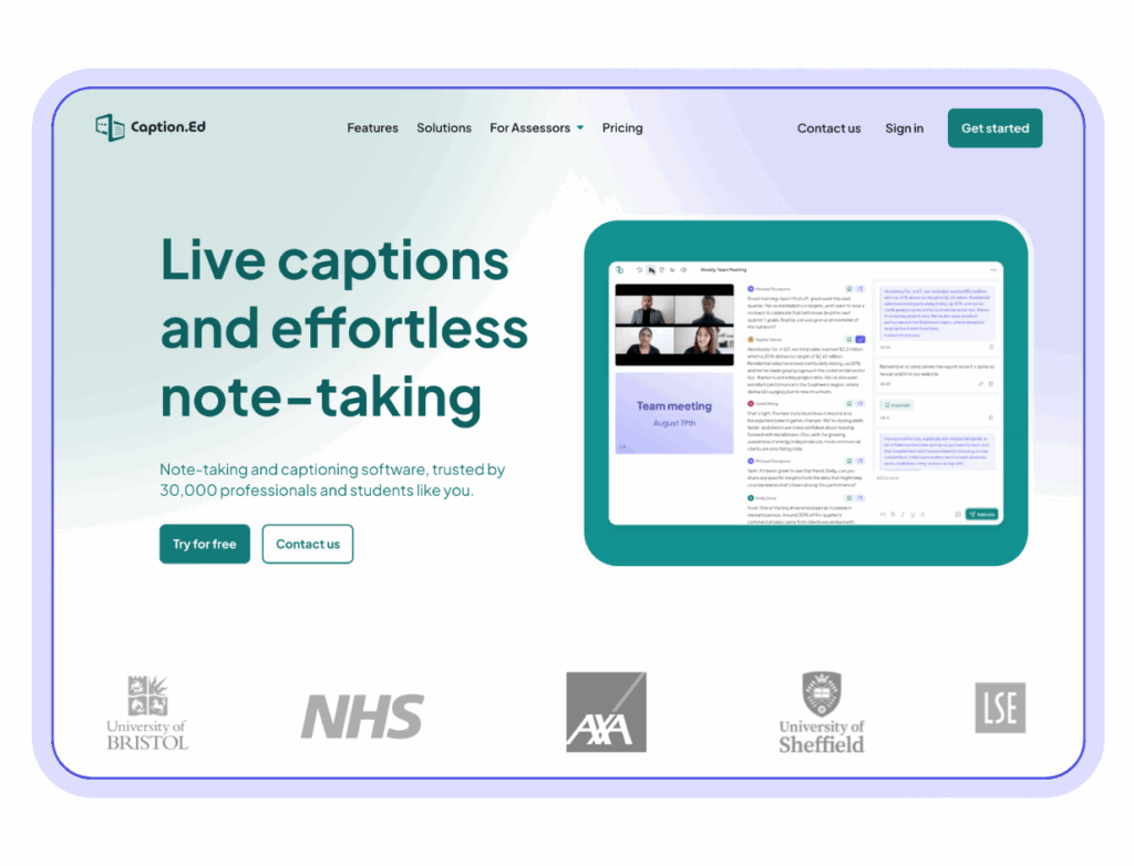 Caption.Ed is a transcription platform designed to work wherever you do: whether that’s a live lecture, an online meeting, or reviewing pre-recorded content. Unlike most tools that only focus on one area (like meetings or human transcription), Caption.Ed covers the full range: live captions, file-based transcription, and powerful AI summaries. It’s trusted across sectors such as education, healthcare, and finance because of its strong security credentials and accessibility-first design.