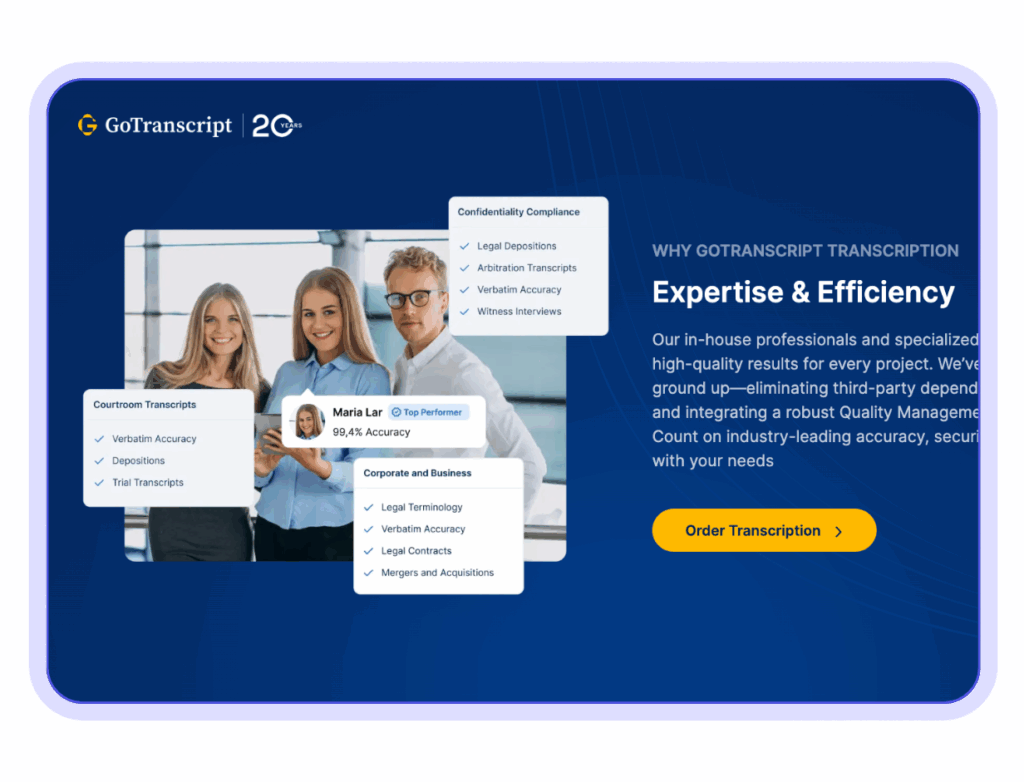 GoTranscript specialises in affordable human-powered transcription, offering accuracy of up to 99% across industries like legal, medical, and academic research. Its flexible turnaround options make it appealing for users working to deadlines, and with wide language support, it’s a solid choice for international projects. That said, its automated service doesn’t hold up against newer AI-first platforms.